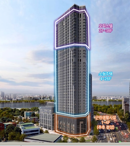 | 사업규모 | 지하 7층 ~ 지상 38층 오피스텔 65실 / 소형주택(도시형 생활주택) 198세대 (도생 임대 33세대 포함) |